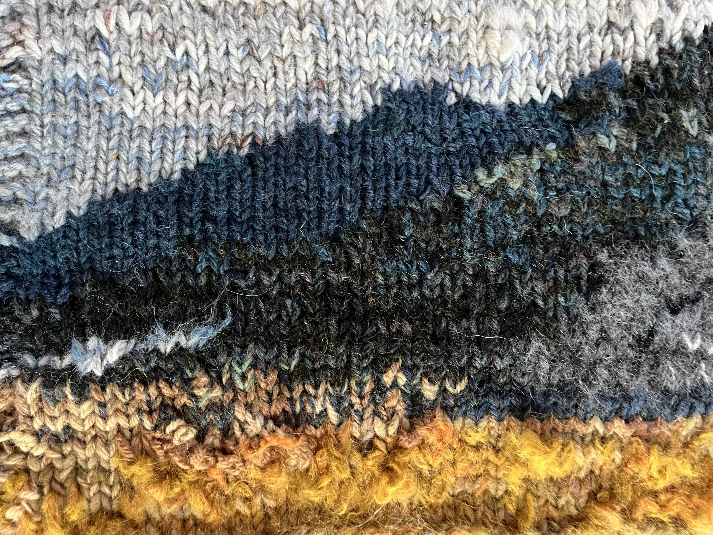 I’m still playing around with this knitted landscape idea and Pelennor Fields prompt lent itself perfectly to that! I have so many little scraps of yarn that I've been holding onto for things like this and they came together so satisfyingly for this piece.